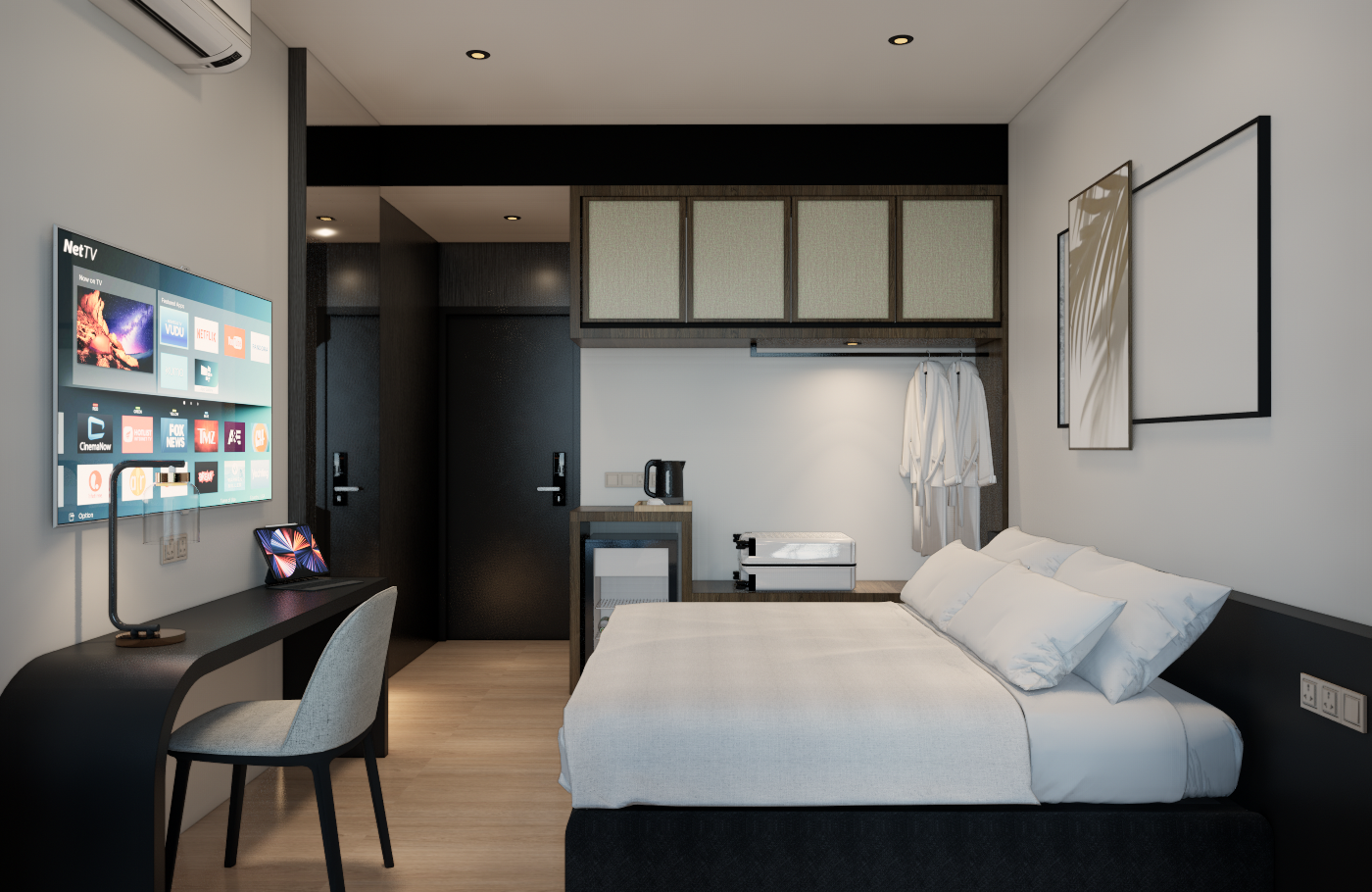 Every suite is fully completed, furnished, and supported by hotel-standard conveniences for effortless living and seamless short-term operation.